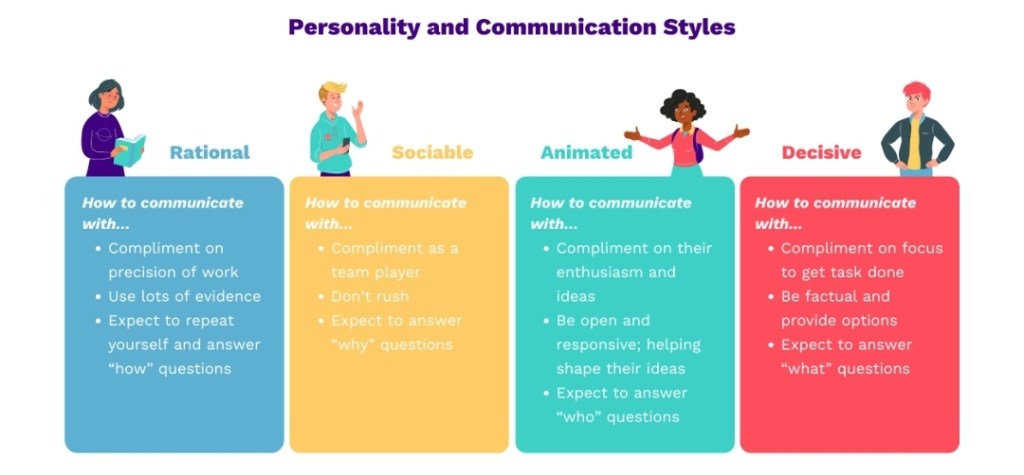 Γνωρίζοντας τον κάθε τύπο συμπεριφοράς και προσπαθώντας στη συνέχεια να τον αποδώσεις σε πρόσωπα που συναναστρέφεσαι συνήθως, θα σε βοηθήσει σημαντικά στην καθημερινή επικοινωνία.